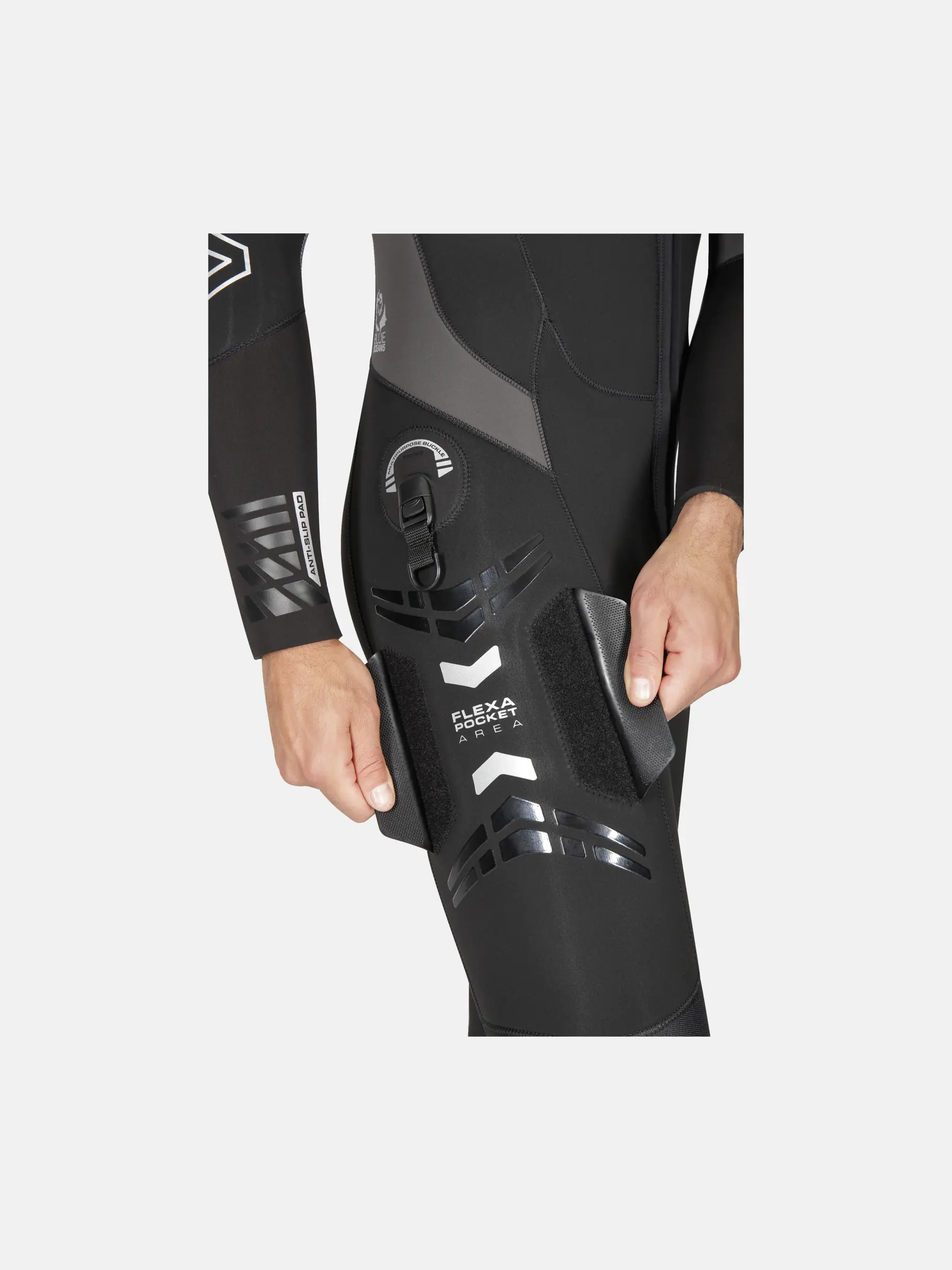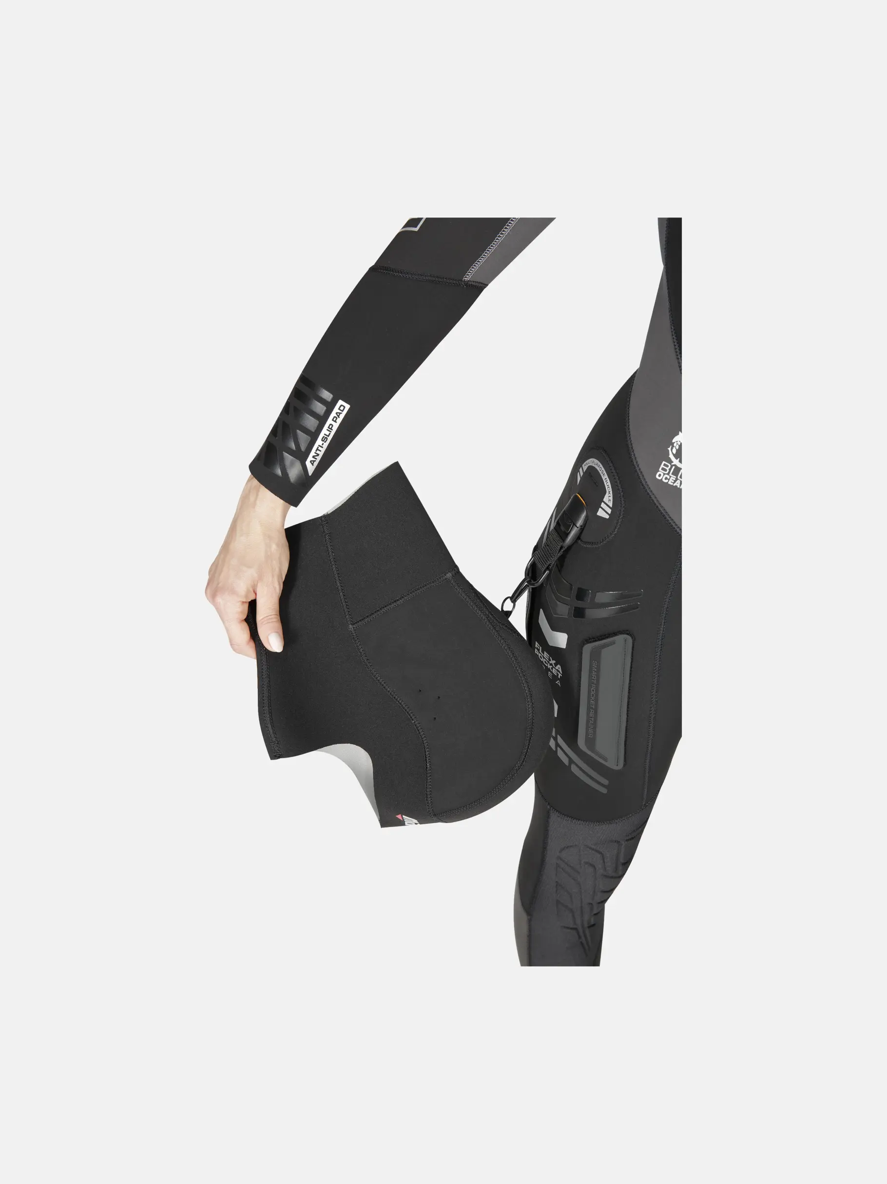 • Il rivestimento in glideskin sui polsini e sulle caviglie ostacola il passaggio dell’acqua